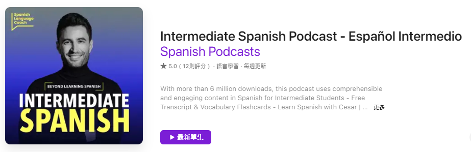 其中一個我很喜歡,也覺得對我有很大幫助的是「Intermediate Spanish Podcast – Español Intermedio」這個節目,推薦給目前介於B1-B2程度的大家。這個頻道除了中級之外,也有另外開設獨立頻道給初級和高級的西語學習者,我覺得是學西語的人在不同階段的學習路上一個很好的夥伴。